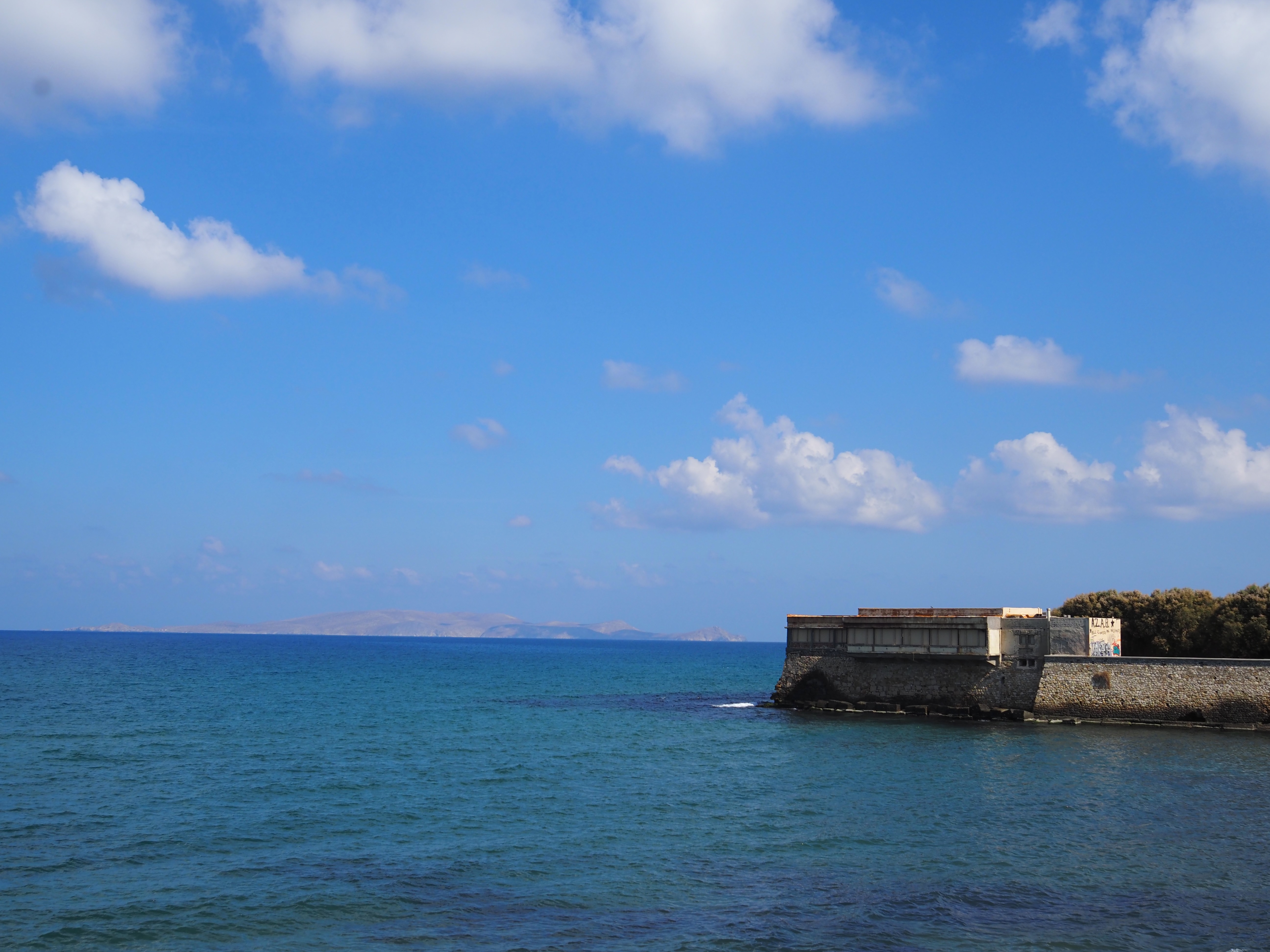 身后是威尼斯人修的城堡。库勒斯堡(Koules Fortress / Rocca al Mare),位于港口入口处的巨型石堡,是威尼斯人在16世纪为防御奥斯曼入侵所建。厚实的墙体、威尼斯狮徽章,以及眺望海面的炮台都令人印象深刻。
