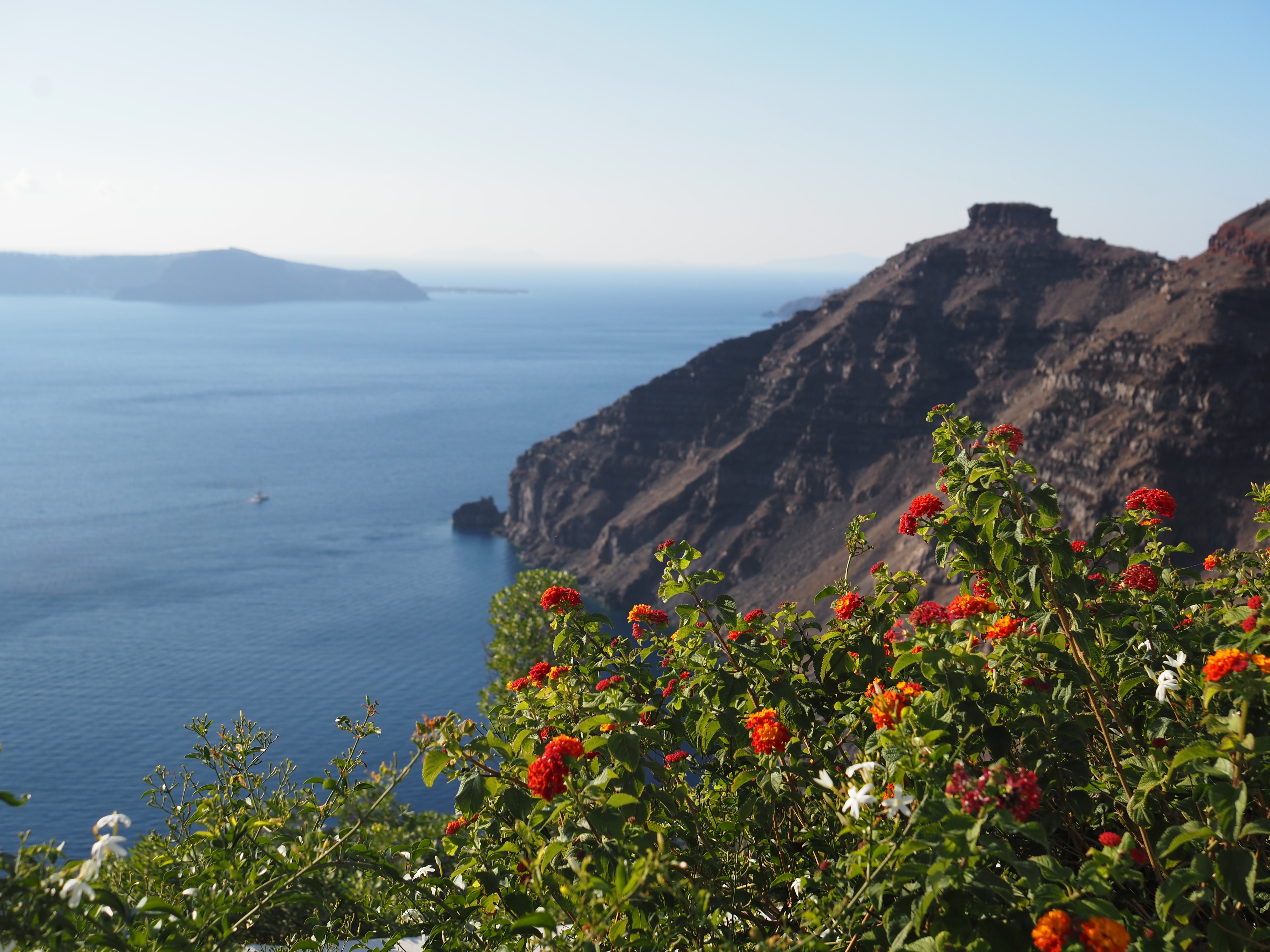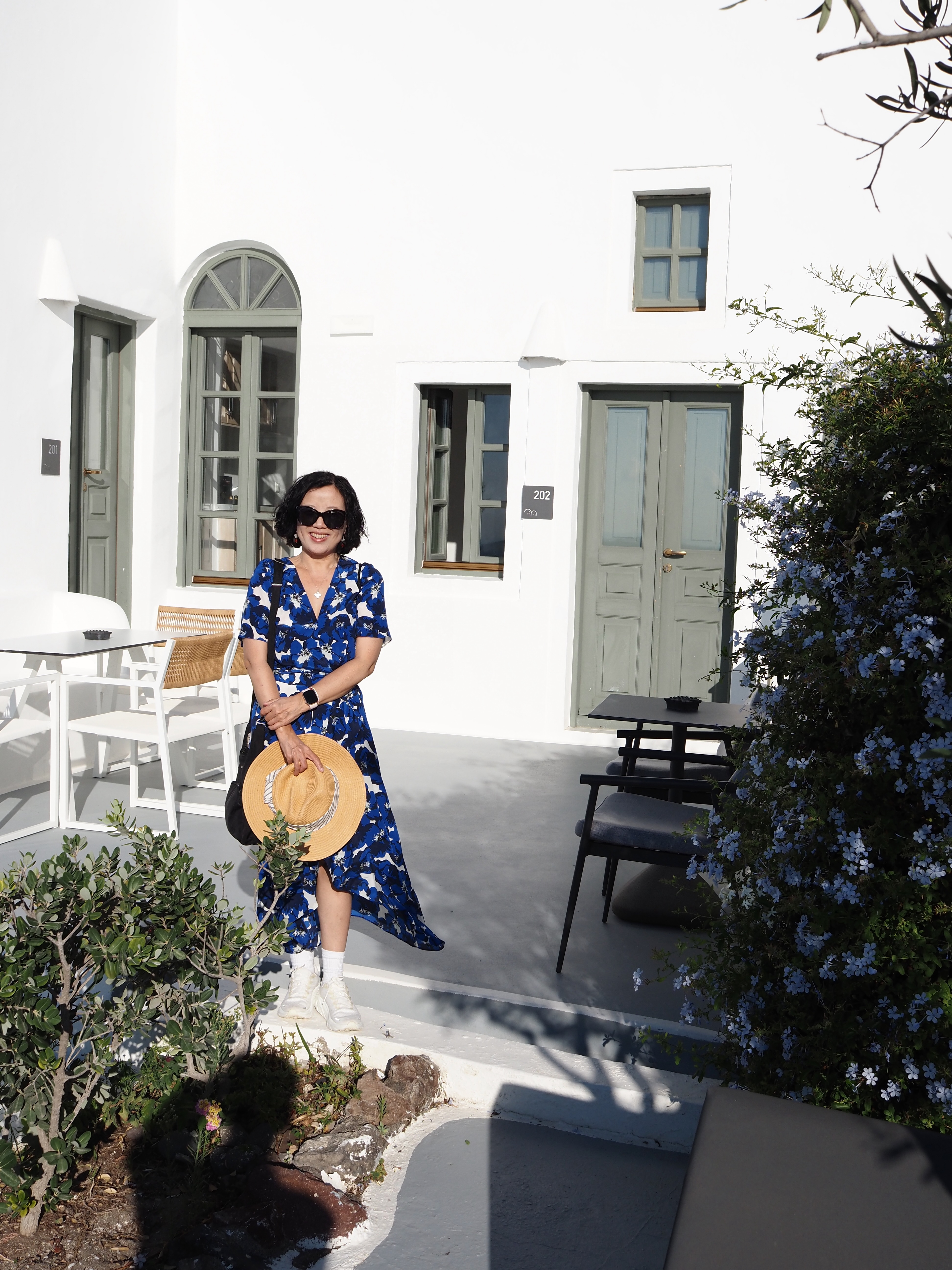 旅途一如既往地耗神。九个多小时的长途航班、转机、入关、提行李、再加上时差。即便有贵宾休息室的咖啡与小食加持,到雅典转机时,我也已是昏昏欲睡。从雅典飞圣托里尼不到一小时,飞机掠过一片深蓝的爱琴海,平稳降落。小岛机场不大,却干净有序。很快,我们便坐上了出租车。