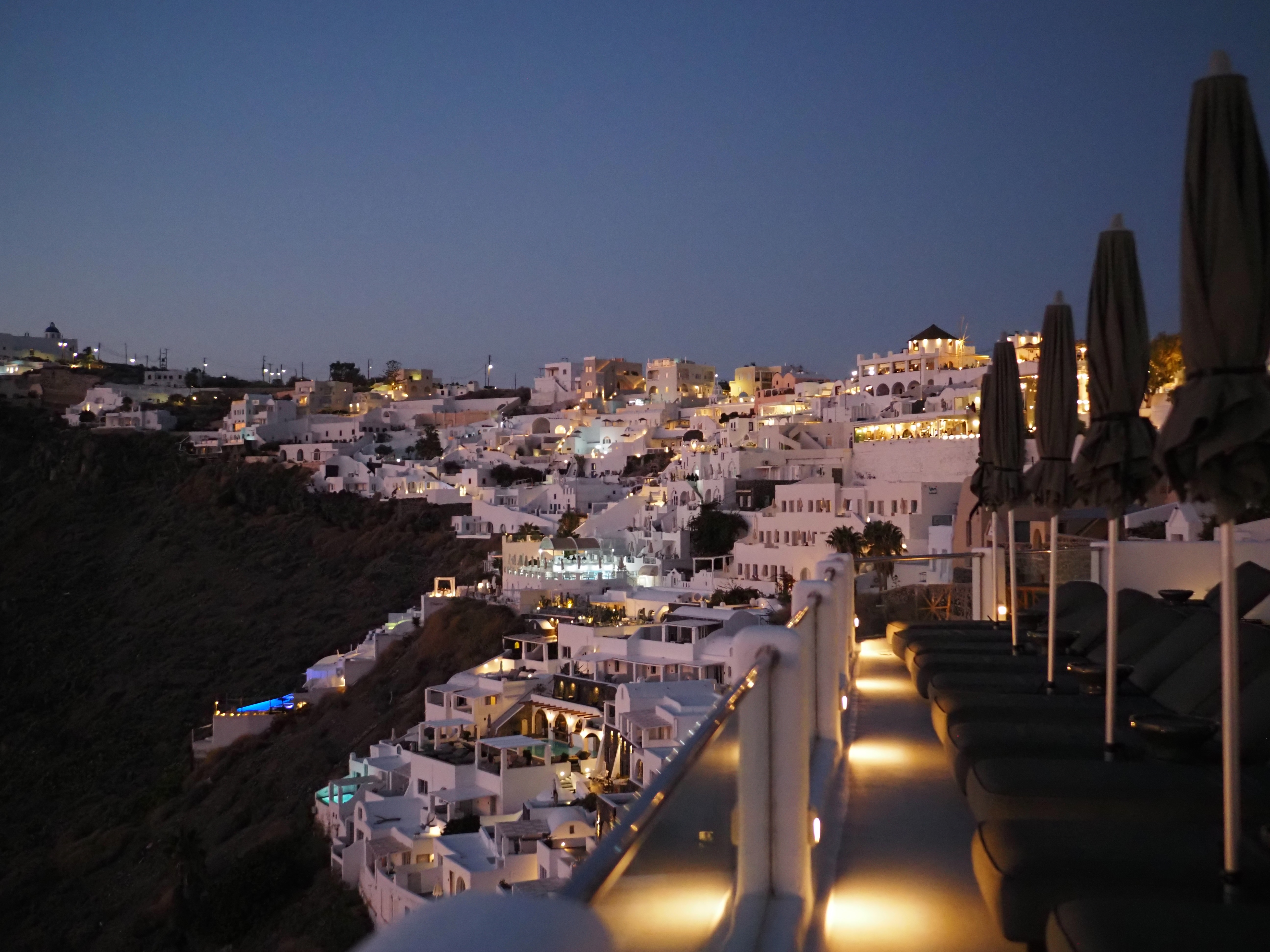 其实海景也看过很多,但这一眼望去,空寂又永恒。因为高,因为在悬崖边上。因为有火山。也许不因为任何,只是干净纯粹的美。那一瞬间,终于懂了圣托里尼的名气为何经久不衰。而旅途的疲惫,被蓝色的海风一扫而空。坐在阳台椅上,眺望波光闪烁的海面,整个人都被治愈了。